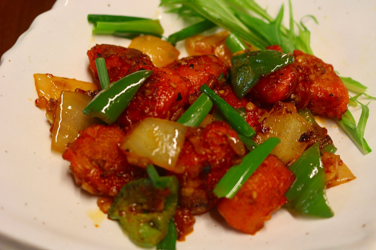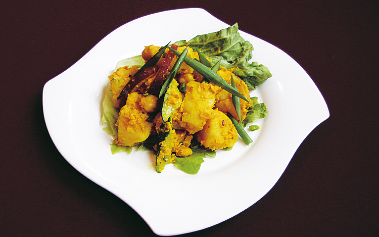 - ポテト、豆、チキンのネパール風スパイシー炒め