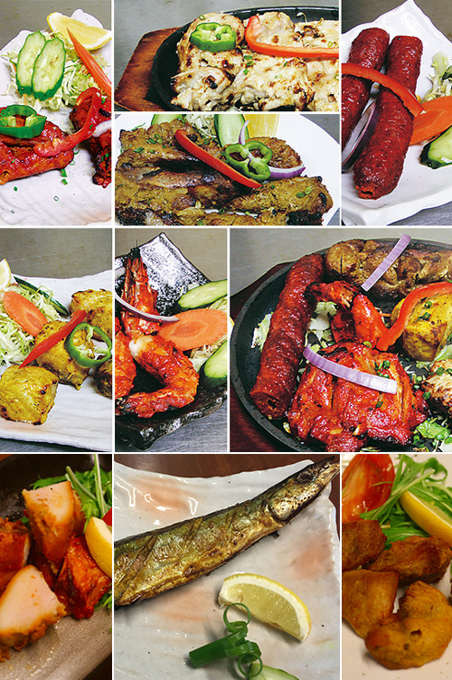 - タンドーリチキン、マライティッカ、フィッシュティッカ、タンドーリプローン、シークカバブ、ポークハッディ入り
